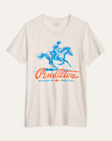 PENDLETON SHORT SLEEVE RACEHORSE GRAPHIC TEE A soft cotton tee with Western spirit. This short-sleeve graphic T-shirt features a bold front print i...