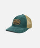 The Mojave Snapback in green combines a classic trucker style with sustainable features. Crafted from a comfortable cotton-polyester blend, it features a green cord front adorned with a woven "Jetty Surf" patch. The recycled plastic visor adds an eco-friendly touch, while the 6-panel design with adjustable snapback ensures a perfect fit for everyday wear. Perfect for casual outings and surf-inspired looks.