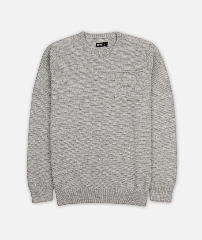 The Brine Sweater in Tan offers a comfortable, casual look with its 100% cotton fabric and unique marled yarn colorways. It features a rolled edge chest pocket and tonal embroidered logo for subtle style, while light ribbing at the waist and cuffs ensures a relaxed fit perfect for everyday wear.