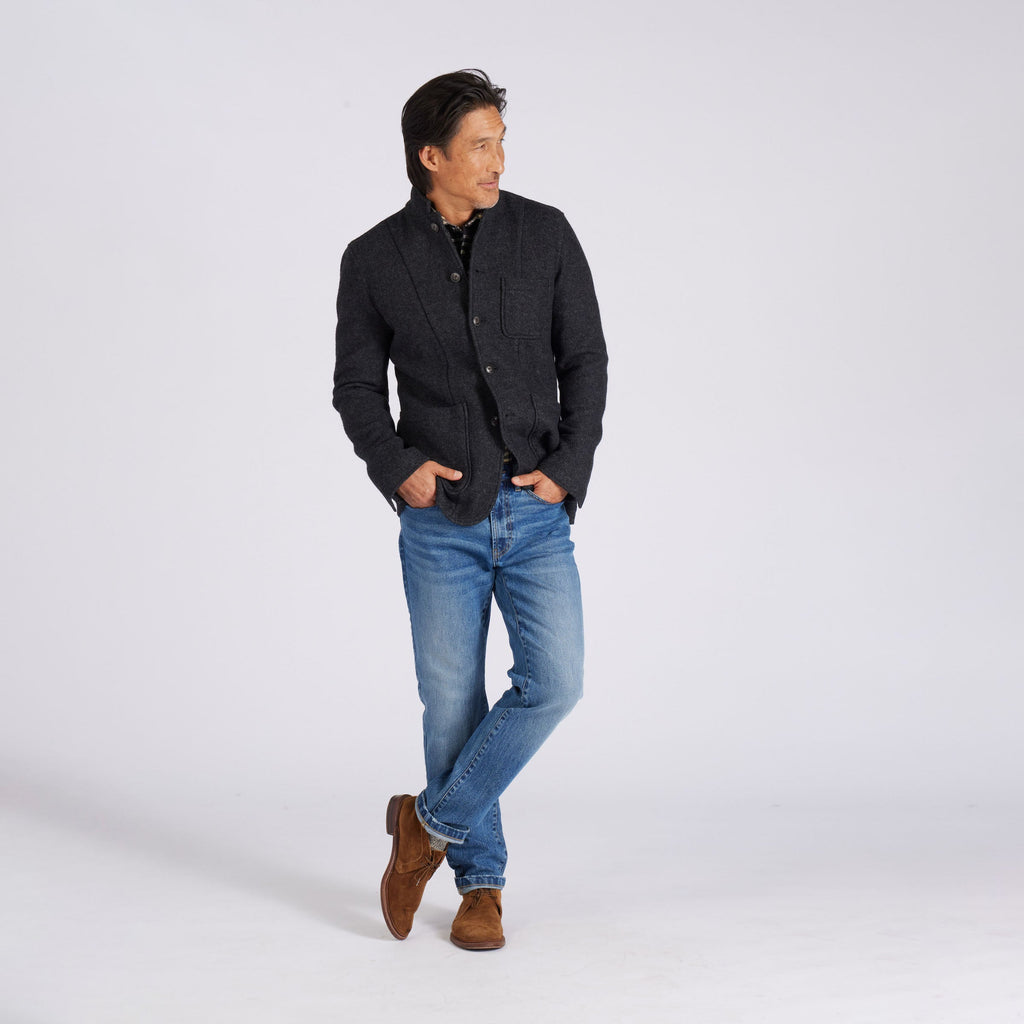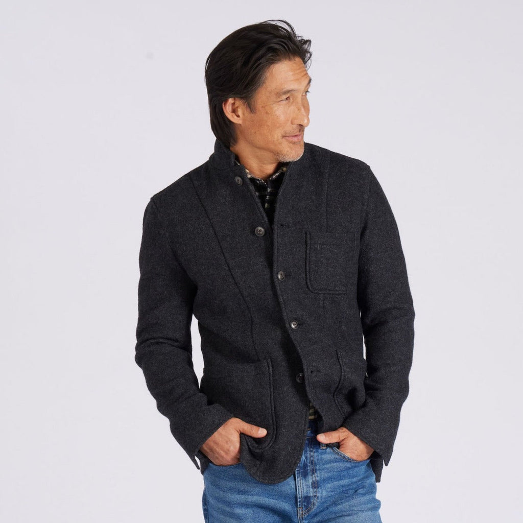 The grand blazer of the season's collection, made from boiled wool, for durability and warmth, the Burnham offers refined protection, perfect for snowball fight weather, slinging drinks downtown and the best holiday hoohahs. Recently, it found its way on the back of Lalo Salamanca, bad boy with style of Better Call Saul.