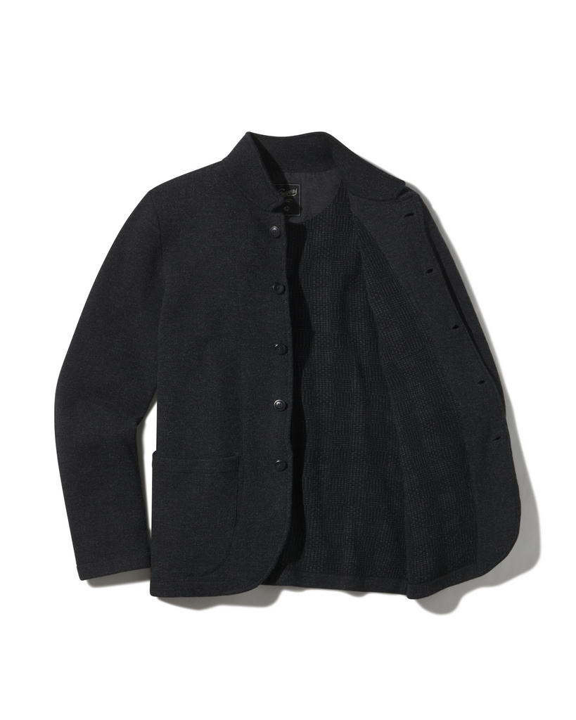 Soft like a sweater. Built like a blazer. And unlike the slanket, it won’t get you kicked out of dinner at Le Pigeon. In fact, with fine finish detailing like a knitted heather exterior and a nail-head patterned interior, these comfy lambswool and nylon crossovers are swish enough to open any door.  After a sold-out debut last season, we brought the Nelson Jacquard Swacket back in charcoal. This swacket (read: sweater jacket) can be worn with dress pants and a button-down shirt as easily as it can be worn with a pair of jeans, this is it.