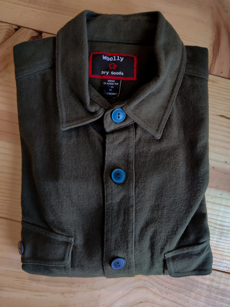WOOLLY DRY GOODS 9OZ SOLID FLANNEL - TALL - DARK OLIVE