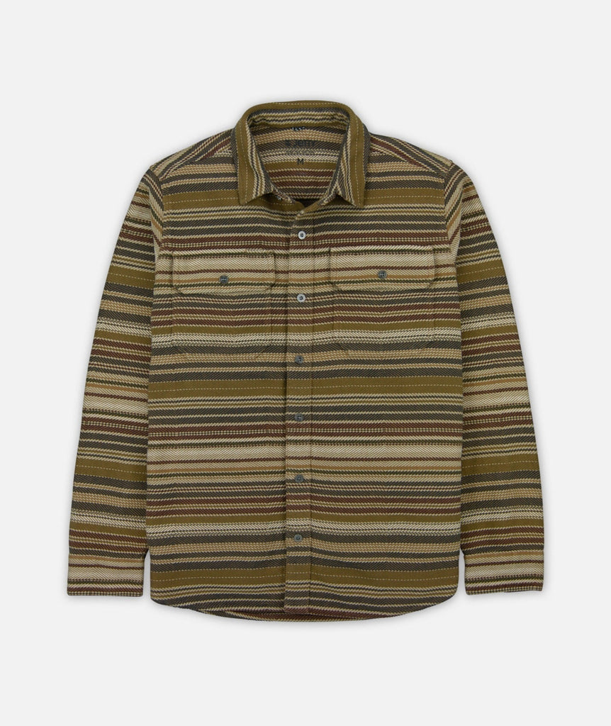 The Horizon Heavy Duty Flannel in classic Brown stripe combines rugged durability with thoughtful design. Featuring laser-engraved buttons and large double chest pockets with secure Otis Pillar flaps, it offers practical storage for everyday essentials. Scallop side-seams enhance movement and comfort, while custom labeling at the neck, inner-placket, and chest pocket adds a unique touch. Perfect for casual, hardworking days, this shirt delivers both function and style.