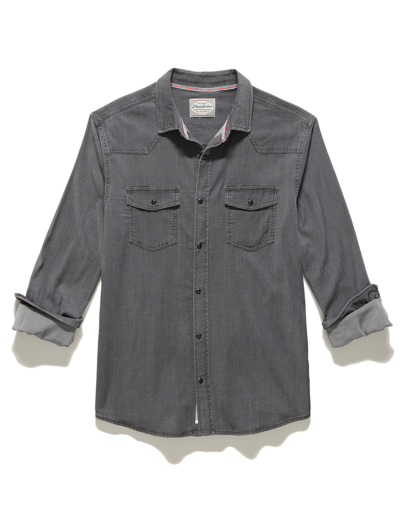 FLAG & ANTHEM SACRAMENTO STRETCH CHAMBRAY WESTERN SHIRT - GREY