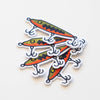 Introducing our Fishing Lure Patch: an accessory that adds vintage charm and coastal flair to your gear. Measuring 1.5 x 3.5 inches, this patch features vibrant shades of orange, green, white, and black, creating the perfect homage to classic fishing lures. It's an eye-catching accessory for your jackets, hats, or bags—ready to be ironed on for a quick and easy upgrade to any look.